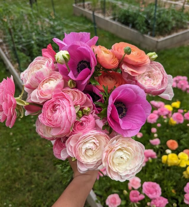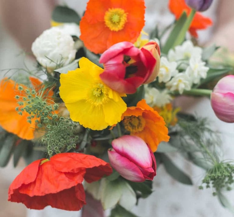 Expect an assortment of Tulips, Poppies, Ranunculus, Anemones, Sweet Peas, Snap Dragons, Babies Breath, and seasonal foliage. Grower selected and arranged based on what is blooming in the gardens on Mother's Day Weekend.